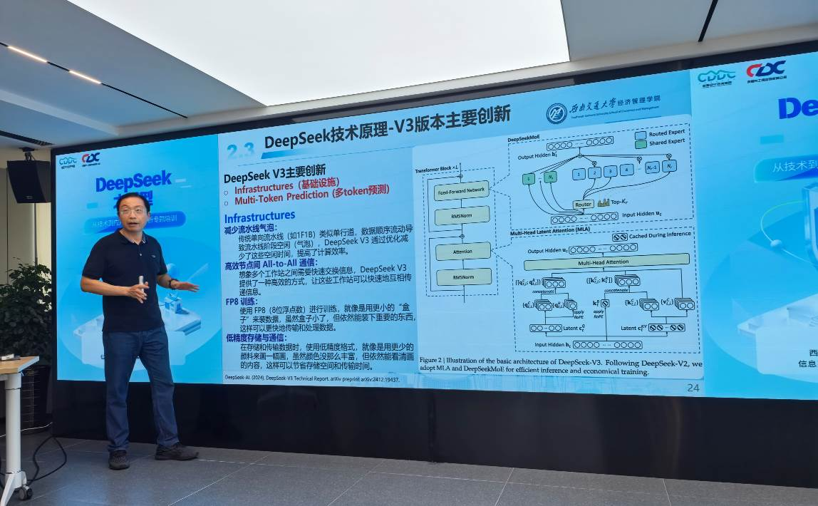 在数字化浪潮席卷全球的今天,人工智能正以前所未有的速度重塑各行各业。7月8日,由荣耀体育(中国)官方主办的“DeepSeek大模型——从技术到应用的全面解析”专题培训在五楼会议室成功举行。本次培训特邀西南交通大学经济管理学院信息系统与运营管理系教授、博士生导师徐进担任主讲,荣耀体育(中国)官方领导及技术骨干齐聚一堂,共同探索人工智能大模型赋能工程咨询行业的前沿趋势与实践路径。